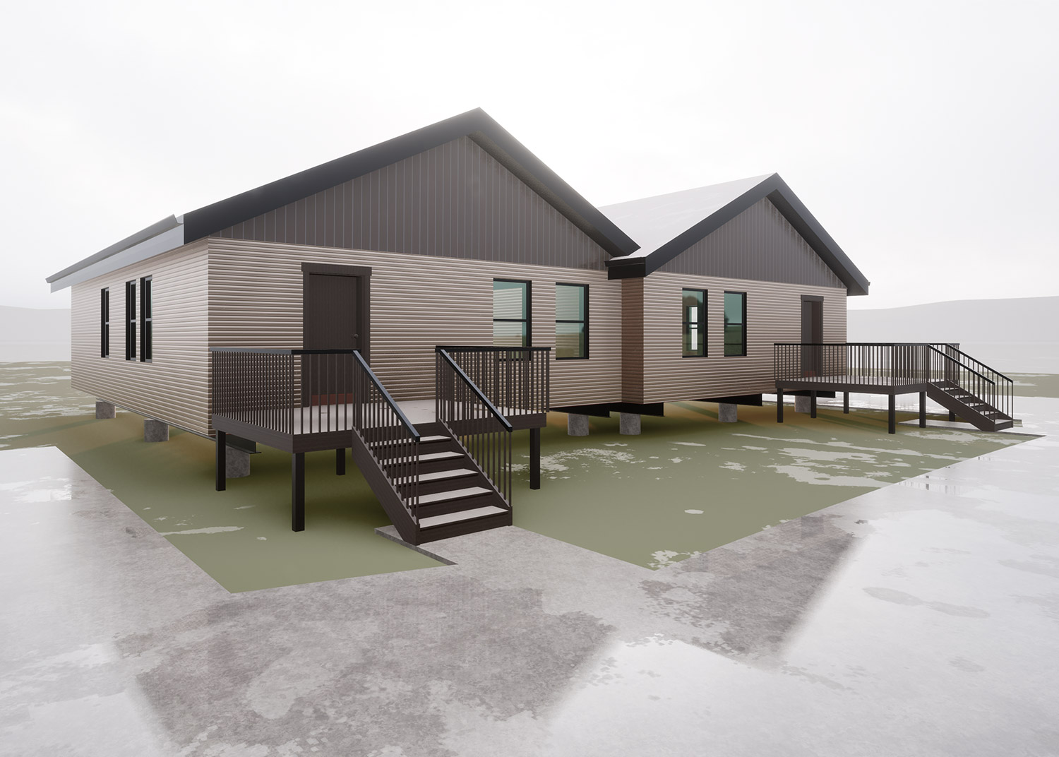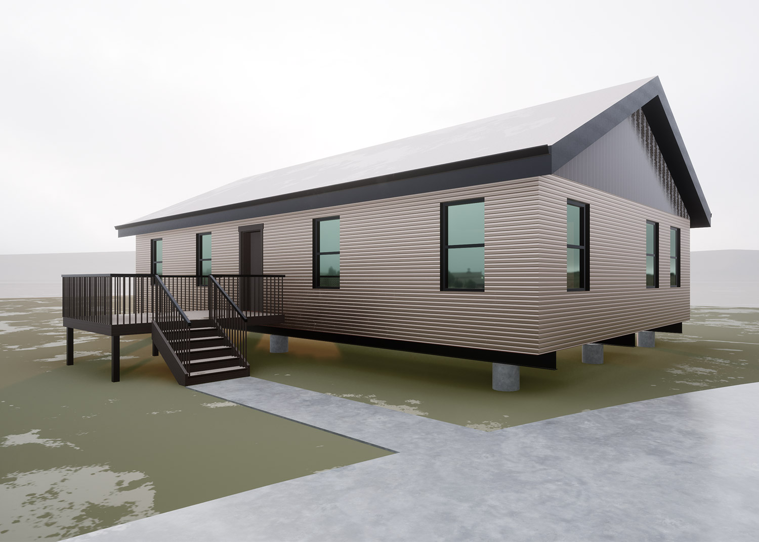 We’ve designed the best possible housing unit for the harsh climate that has freezing weather in the winter, and warm weather in the summer. Our helical pier system is specifically made for building on top of permafrost.