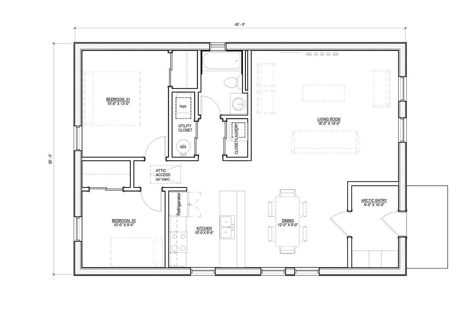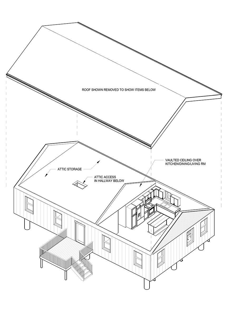 Our housing units include: arctic entry, storage space in the attic, seven-day construction time, pre-finished panelized walls with roof, and flooring included.